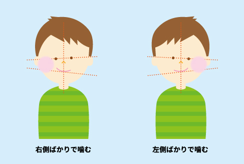 嚙み合わせや歯並びが悪いと、上下の歯と歯が嚙み合っている部分が少なくなる事から、咀嚼(そしゃく)機能が悪くなります。